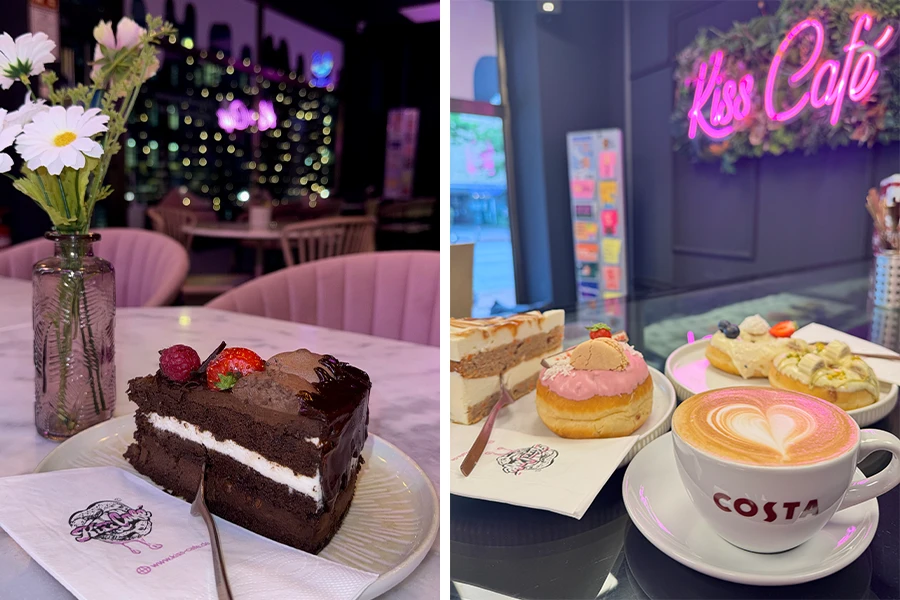 Nach dem Frühstück bleibt Kiss Café Anlaufstelle für Donuts, Shakes, Frappés sowie Coffee & Cake – visuell stark, geschmacklich hochwertig und emotional aufgeladen.