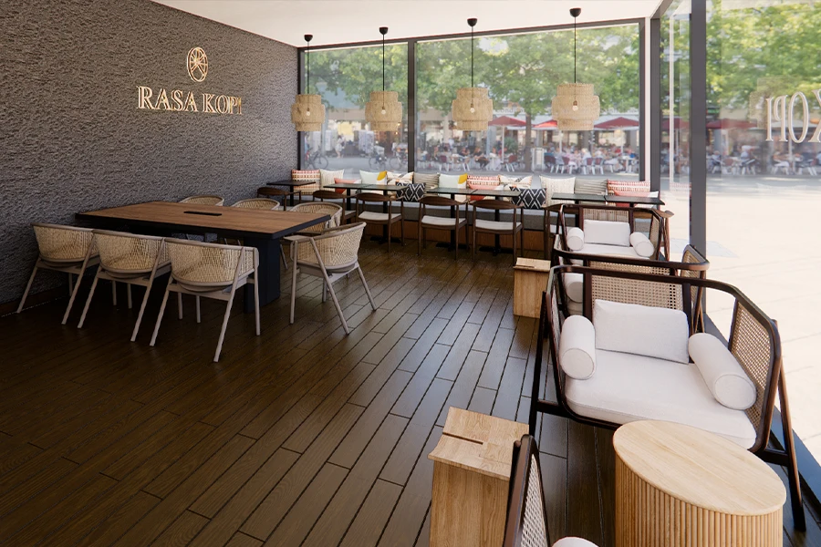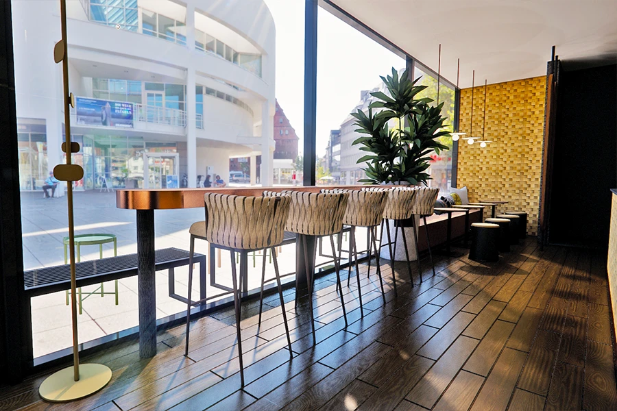 Du erhältst Unterstützung bei Design, Planung und Umsetzung — von der Möblierung bis zum Lichtkonzept. Dein Standort wirkt modern, warm und kulturell inspirierend. Gäste spüren sofort: Das ist kein Standard-Café, sondern ein durchdachtes Erlebnis.